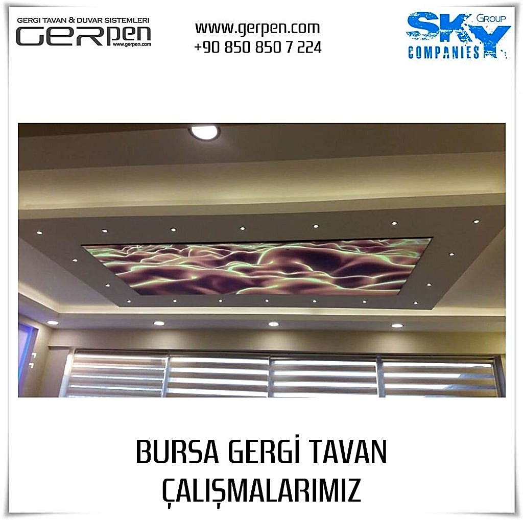Bursa Gergi Tavan hizmetleri için Sky Group Companies markası olarak GerPen öncelikli olarak ülkemizdeki tüm illerde tüm dekorasyon firmalarına toptan malzeme tedariği ve montaj eğitim hizmetleri vermektedir. Hizmetleri malzemeli, malzemesiz veya anahtar teslim şeklinde sunmaktadır. En önemli faktör Montajdaki işçilik kalitesi ve uygulanan kumaş, şerit led gibi malzeme kalitesi ürün ve hizmette hayati rol oynamaktadır. M2 Metrekare fiyatları için Gergi Tavan Sistemleri sayfamızdan ürün modelleri ni belirleyerek ücretsiz montaj fırsatlarından yararlanarak anlık fiyat alabilir sipariş verebilirsiniz.