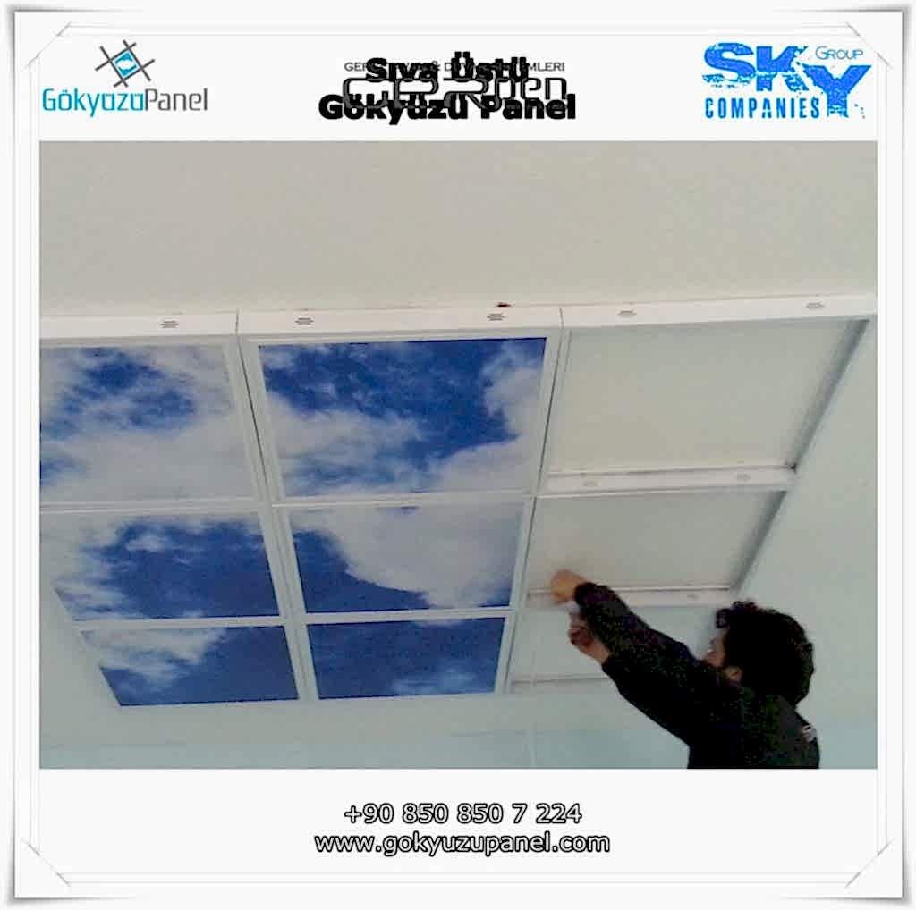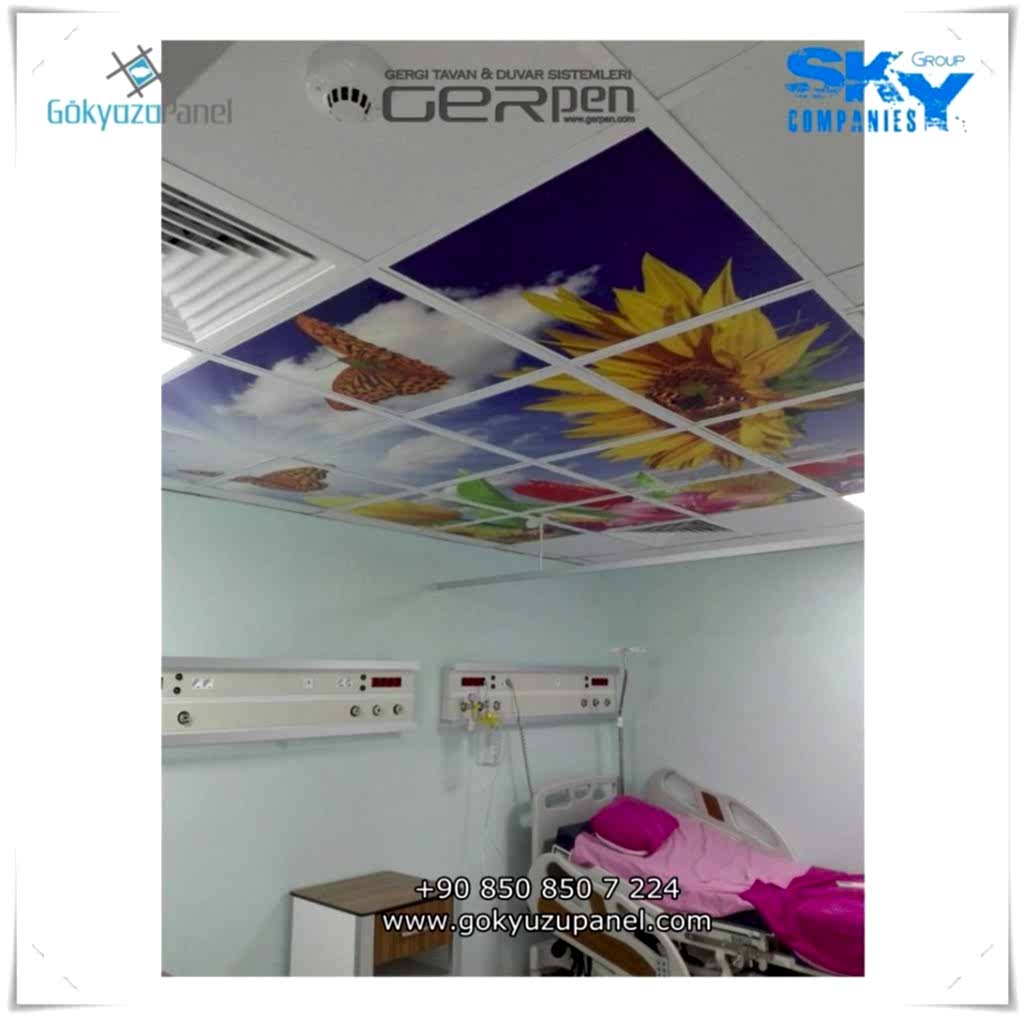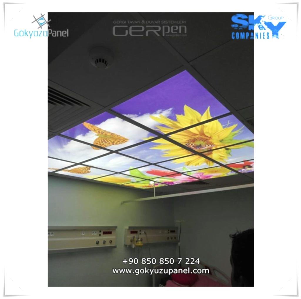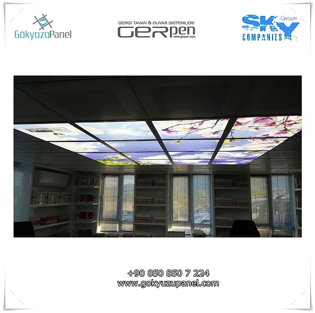 Gökyüzü Panel ürünlerinde ise durum tamamen farklıdır. Mevcut T24 taş yünü asma tavan sistemlerine ( sıva altı ) birebir uyum sağlar. 60×60, 60×120, 30×30, 30×60, 30×120, 15×120 gibi uluslararası asma tavan panelleri standart ölçülerine sahiptir. T24 Asma tavan ızgarası olmayan bölümlerde yine kutu alçıpan ile oluşturulan tavanlarda da kolayca kullanılabilir. Led Panel yapısı benzeri iç yanlardan led aydınlatmalı, homojen ışık dağılımı sunar. Böylece ışığı her santim de eşit alırsınız. Pleksiglas ön yüzeyi ve istenilen her görselin baskısının yapılabileceği sağlam, özel ve kullanışlı ürünlerdir. Montajı son derece basit olan bu ürünler sadece elektrik bağlantısına ihtiyaç duyar. Desen ve görseller her panel de özel ve ayrı olabileceği gibi birbirini takip eden puzzle şeklinde de oluşturulabilir. Oluşan kareli, dikdörtgen, oval ve benzeri puzzle görüntüler yapılan aydınlatma ve dekorasyona daha estetik bir görünüm kazandırır. Kullanım esnasında herhangi bir sorun yaşandığı zaman sorunlu panel çok kolay bir şekilde yenisi ile değiştirilebilir. Mevcut mekandan taşınma gibi durumlarda paneller çok kolay bir şekilde tavandan alınıp taşınabilir, yeni mekanda kullanılabilir.