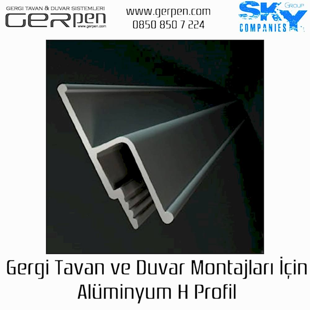 Gergi tavan ve gergi duvar montajları için 1. sınıf kaliteli alüminyum H profil.